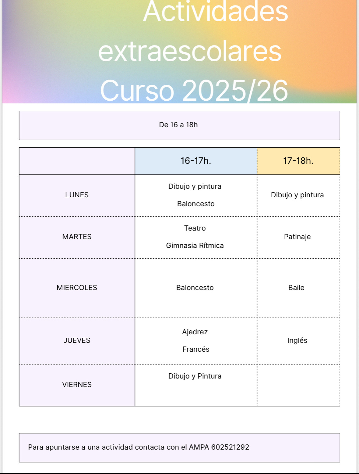 Actividades Extraescolares 2025/26 » Actividades Extraescolares 2025/26