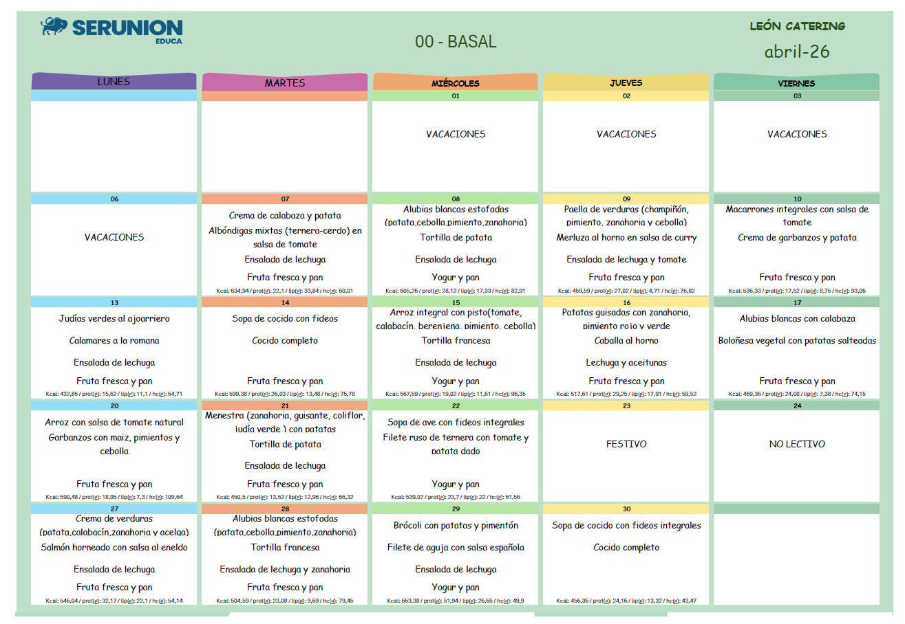 MENÚ ABRIL 2026
