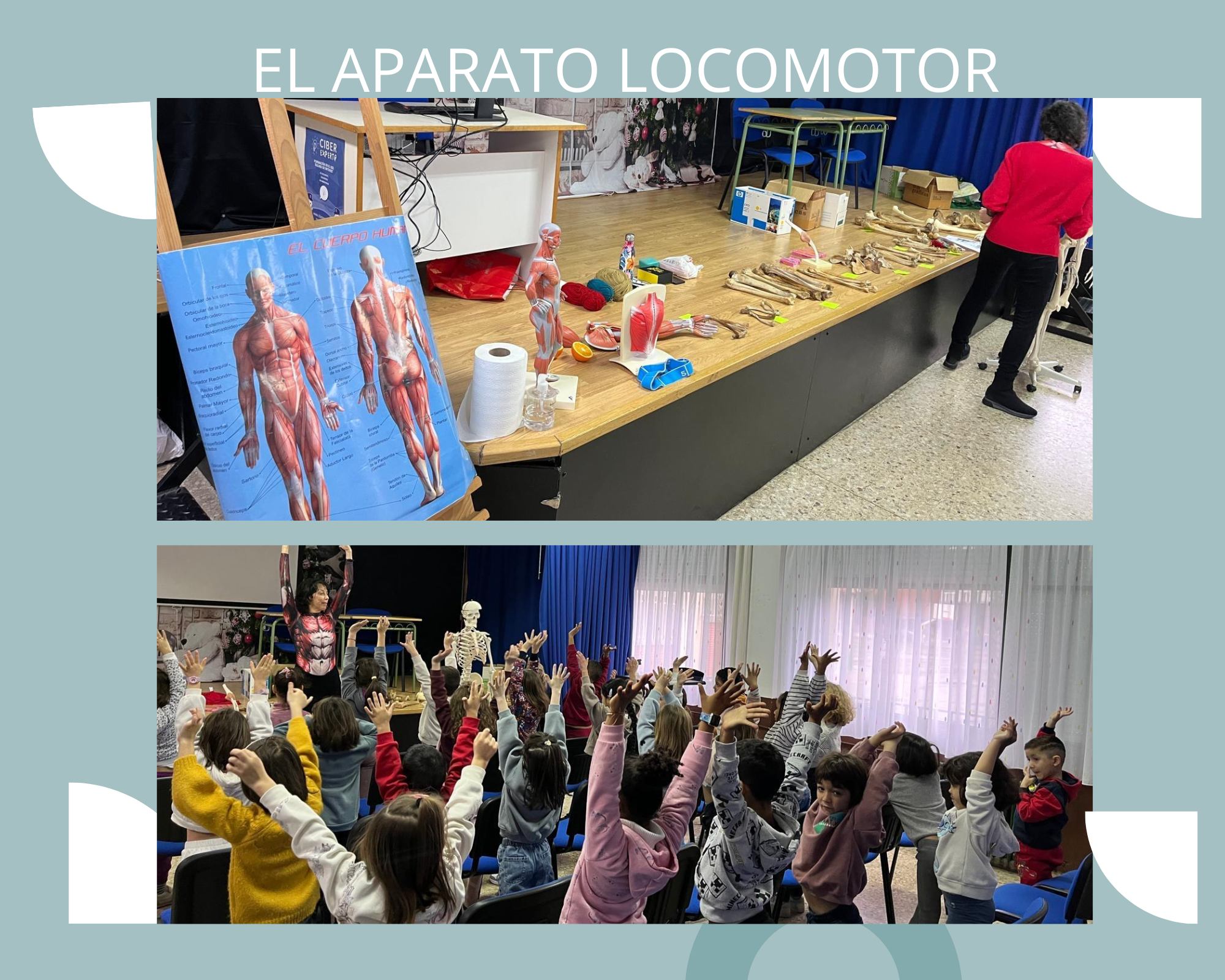 Aprovechando todos los recursos de la Comunidad Educativa una madre, experta en la materia, ha explicado a los niños y niñas de 1º de primaria el funcionamiento del aparato locomotor con materiales reales y ejemplos prácticos.